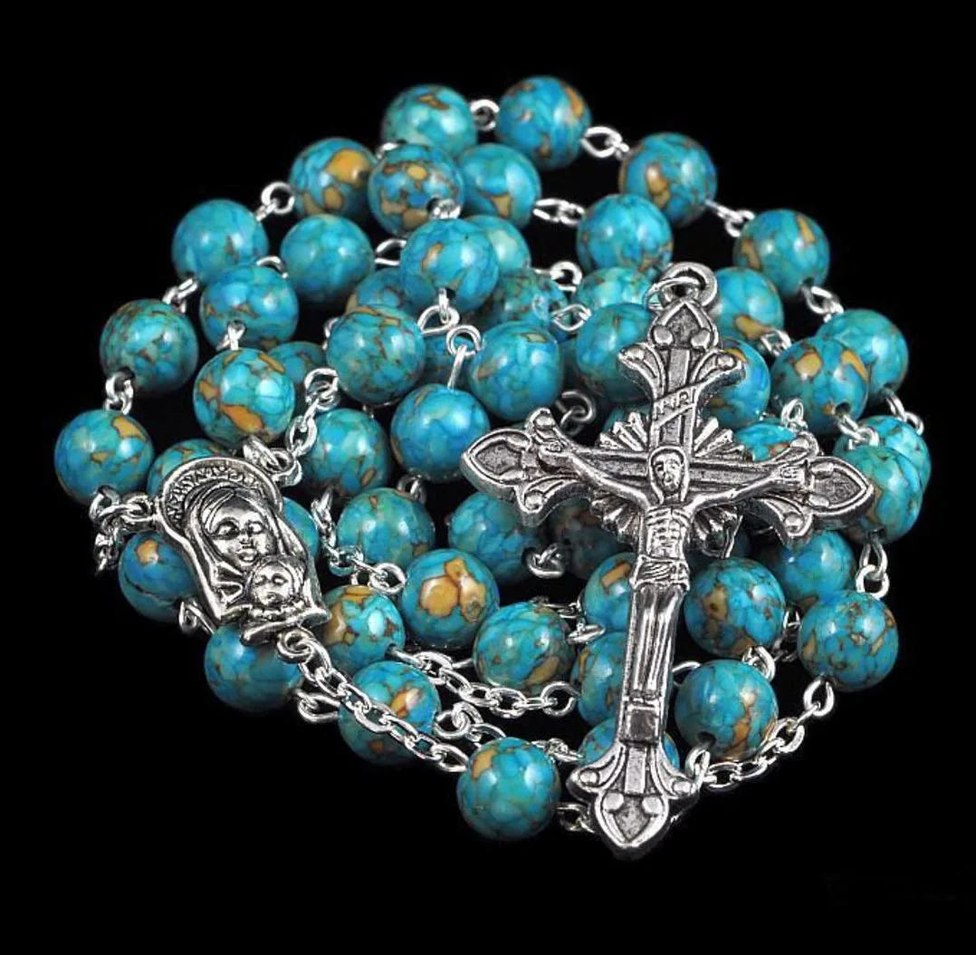 This Catholic rosary features beautiful Czech AB glass beads. The five-decade design follows traditional rosary structure. The glass beads reflect light with a subtle, elegant shimmer. Silver-tone components add a classic and timeless finish. This rosary is ideal for daily prayer and devotion. Its craftsmanship reflects reverence and spiritual care. The smooth beads feel comfortable in the hands during prayer. Suitable for both adults and children of faith. It makes a meaningful First Communion gift. Also perfect for confirmations and other religious occasions. The rosary is lightweight yet durable for long-term use. This piece beautifully combines tradition, faith, and elegant design.