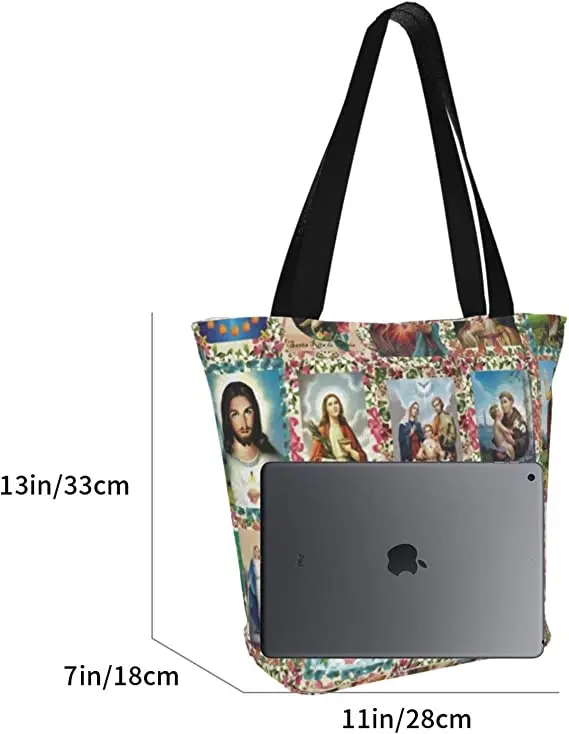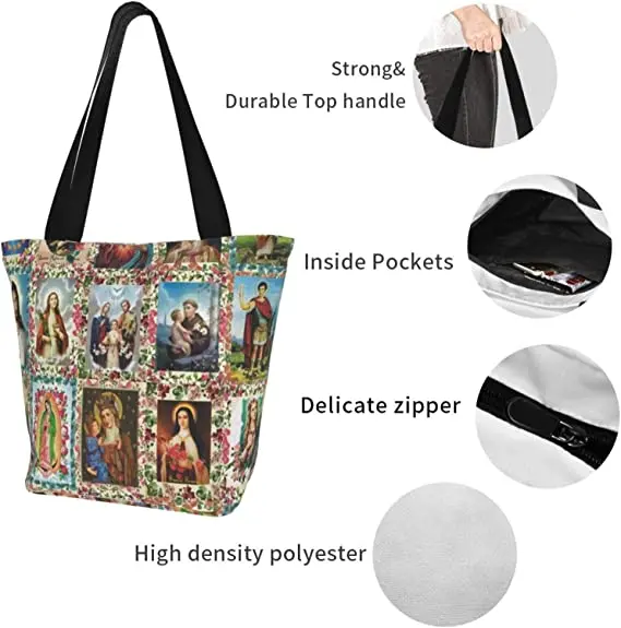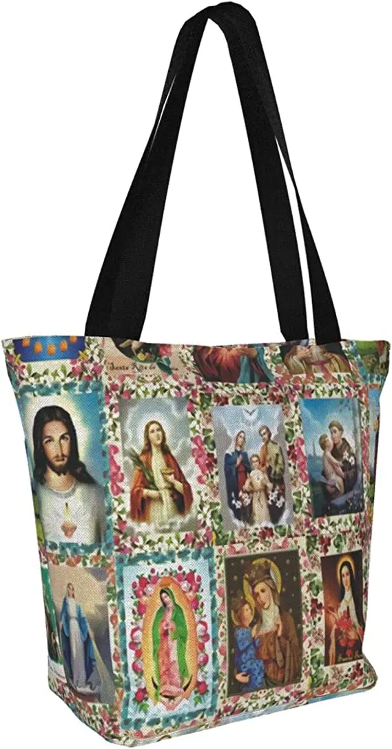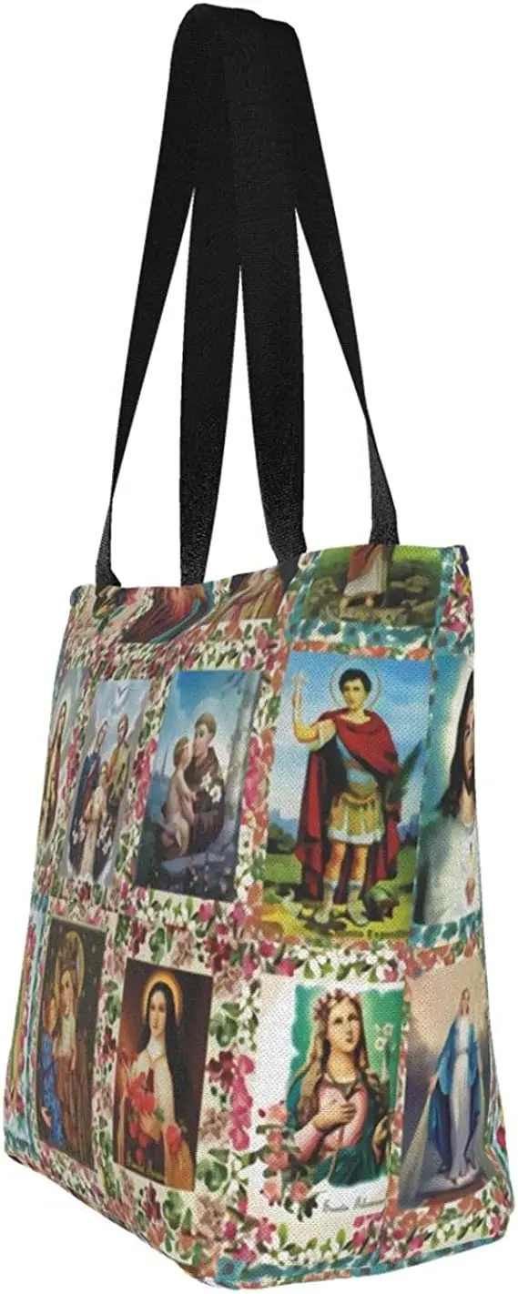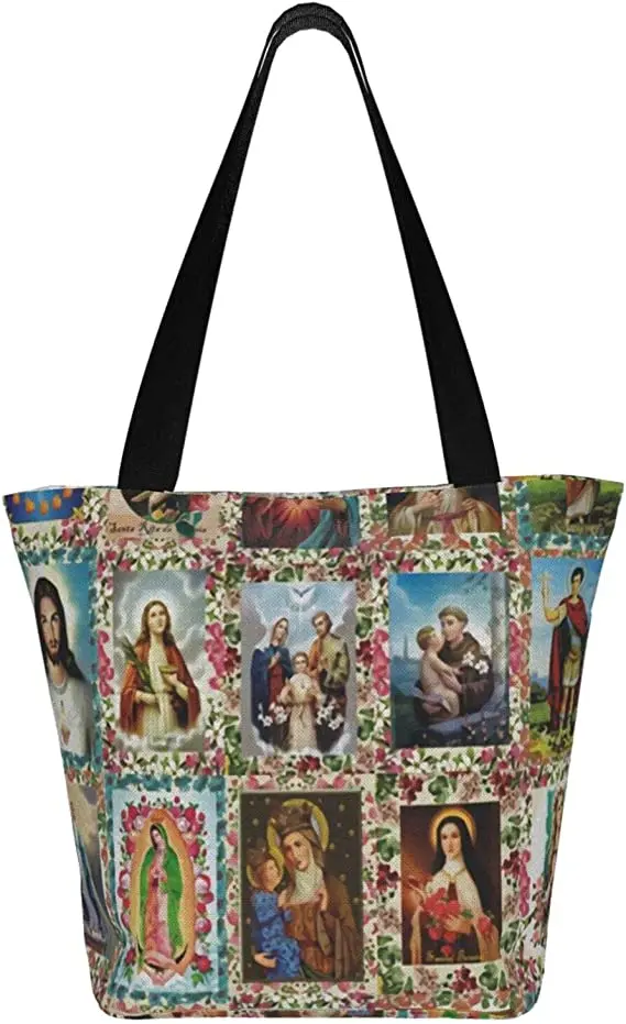 This Catholic Saints tote bag features inspiring images of beloved saints. The design celebrates faith, devotion, and spiritual heritage. It is made for everyday use while expressing meaningful beliefs. The roomy interior easily holds groceries, books, or daily essentials. Strong handles provide comfortable shoulder carrying. This tote bag is ideal for shopping, church events, or travel. The saint imagery adds a beautiful and reverent touch. It makes a thoughtful gift for Catholics and faith-filled individuals. The reusable design helps reduce waste while staying stylish. Durable construction ensures long-lasting use. It pairs well with casual outfits and daily routines. This tote bag blends faith, function, and inspiration effortlessly.