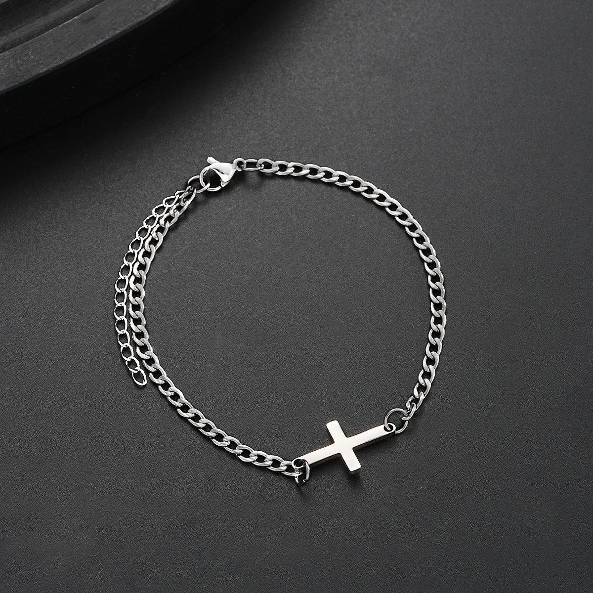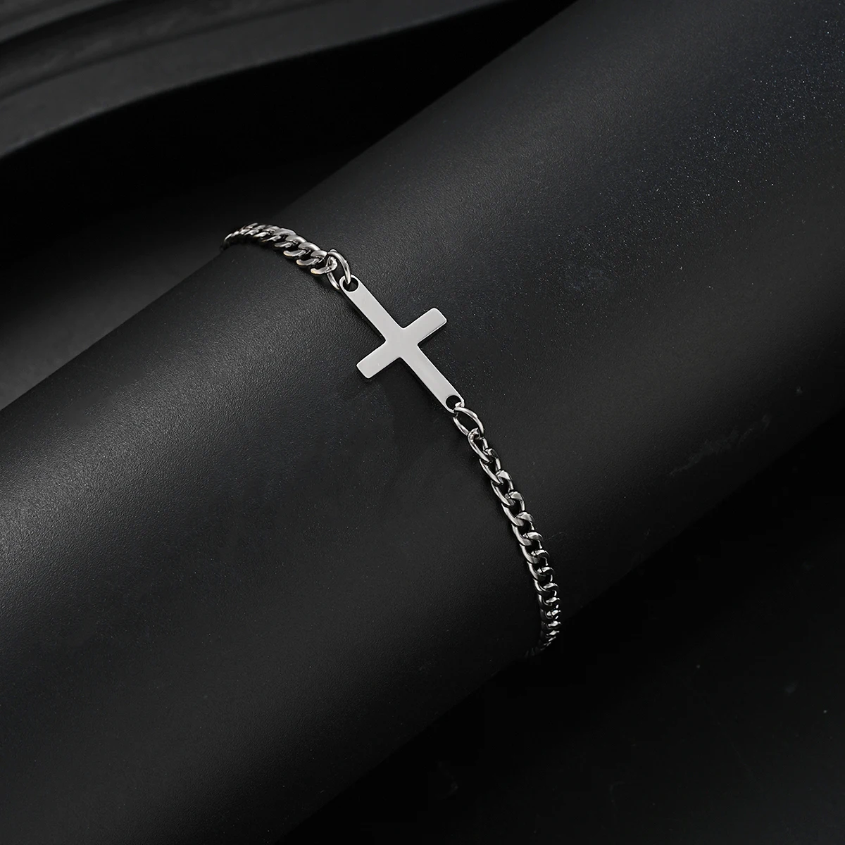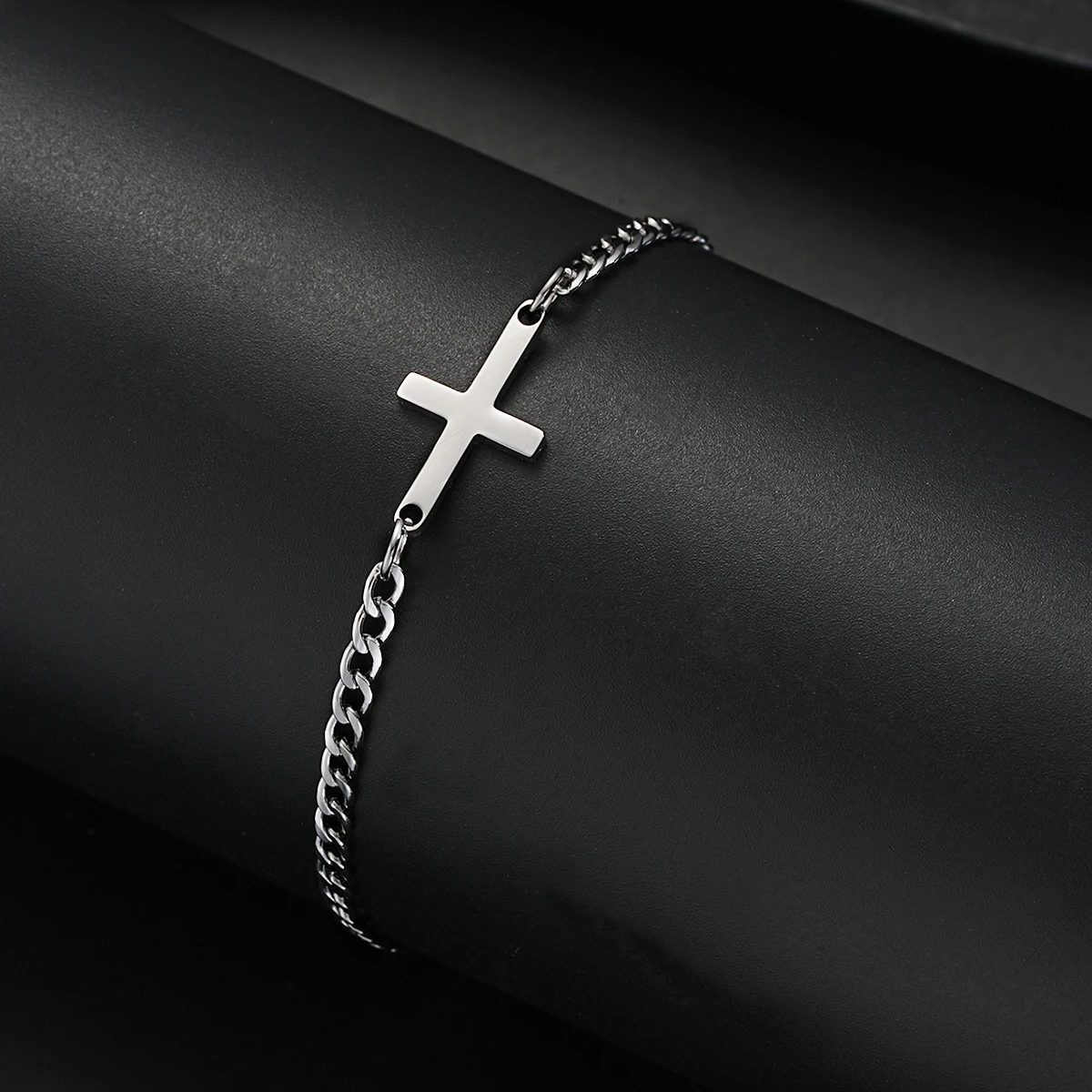 This simple yet striking men’s cross Cuban chain bracelet is designed for everyday style with a bold edge. Made from high-quality stainless steel, it offers lasting durability and a polished silver finish. The classic Cuban link design is paired with a sleek cross charm, adding a subtle touch of faith. Its punk and hip hop influence gives it a strong, confident vibe. The bracelet is lightweight and comfortable for all-day wear. Perfect for casual outfits or streetwear looks, it’s a versatile addition to any jewelry collection. The secure clasp ensures it stays in place throughout your day. This piece is ideal for men who appreciate minimalist yet expressive accessories. Whether you’re dressing up or down, it completes your look with understated style. A great gift for birthdays, holidays, or simply treating yourself in 2025.