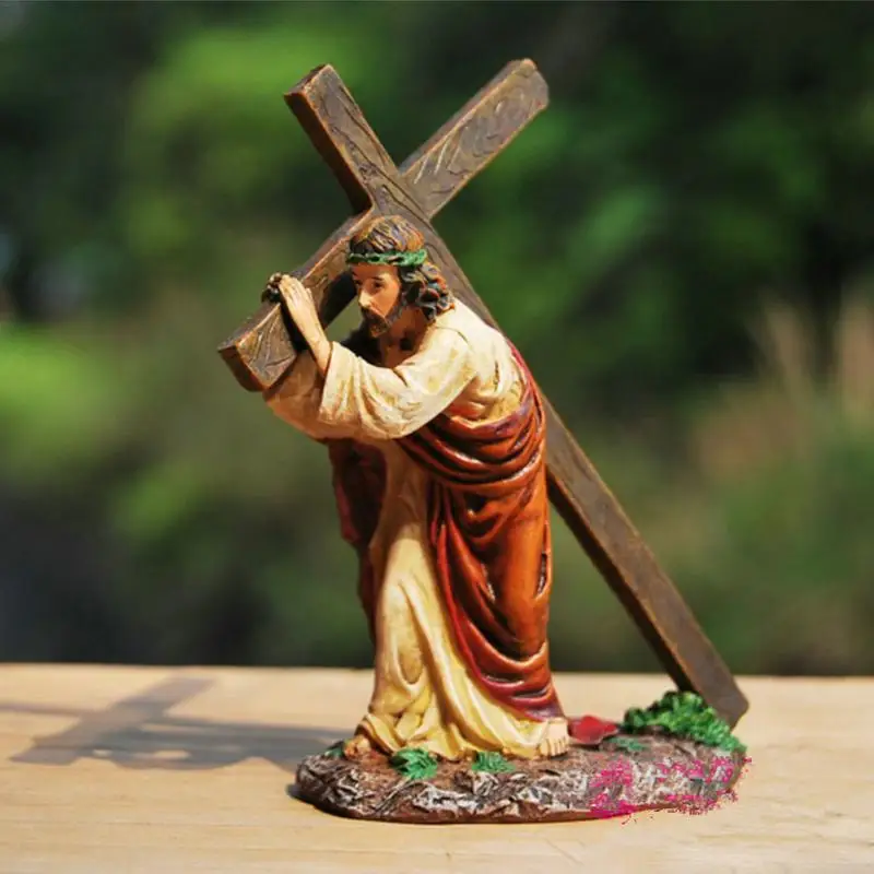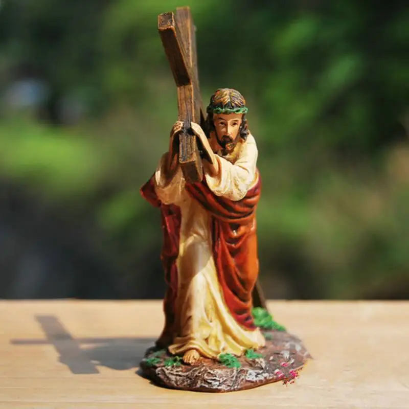 This crucifix Jesus resin statue is a powerful symbol of faith and devotion. Crafted with fine detail, it depicts Christ on the cross in a traditional and reverent pose. Made from durable resin, the statue is lightweight yet sturdy for long-lasting display. Its design reflects classic Catholic iconography, making it ideal for home altars or prayer spaces. The neutral tones and lifelike features give it a timeless and spiritual feel. It serves as a meaningful reminder of sacrifice, love, and redemption. Whether placed on a shelf, desk, or mantel, it brings a sacred presence to any room. This statue is suitable for both personal devotion and