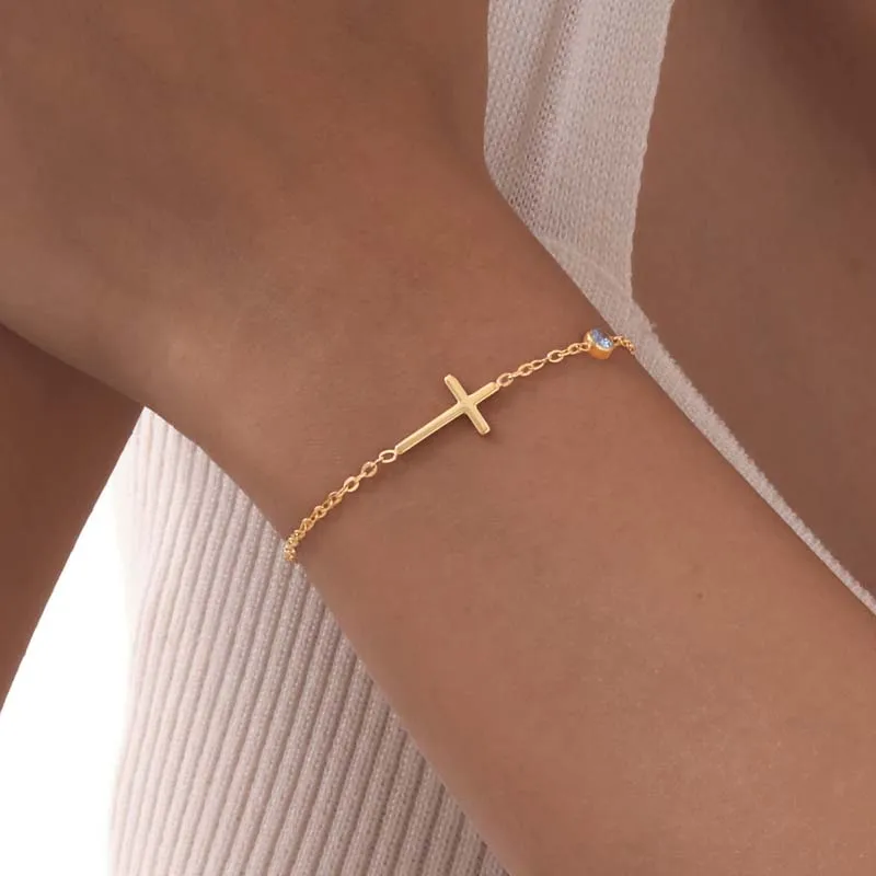 This gold-colored stainless steel cross chain bracelet is a stunning accessory for women. Featuring a shiny CZ zircon charm, it adds a touch of sparkle and elegance. The bracelet’s polished finish ensures it catches the light beautifully. Perfect for weddings, special occasions, or everyday wear. Its durable stainless steel construction resists tarnishing and maintains shine over time. The chain design is both fashionable and comfortable for all-day wear. This piece makes a thoughtful gift for anniversaries, birthdays, or holidays. Its classic cross charm symbolizes faith and style. Lightweight and adjustable, it fits most wrist sizes. Elevate your jewelry collection with this elegant and meaningful bracelet.