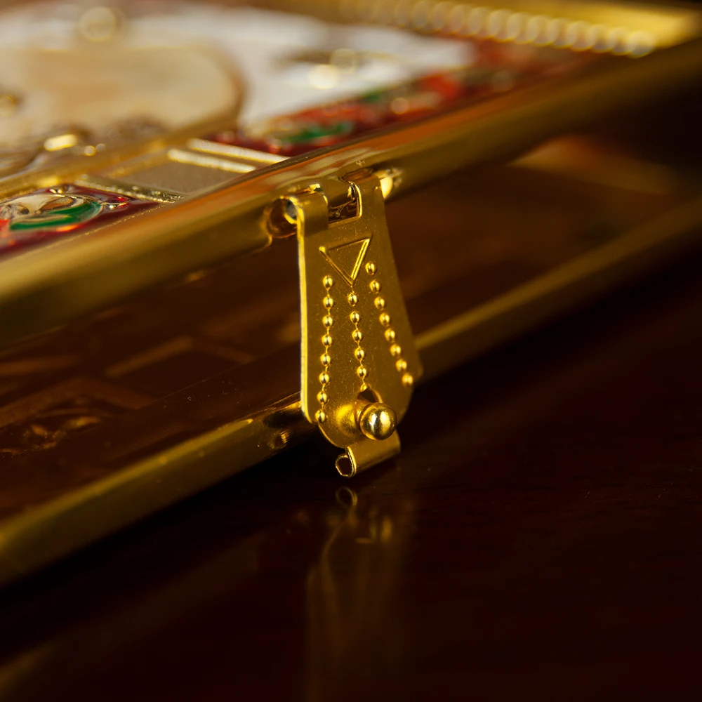 This Eastern Orthodox Gospel book cover is crafted for church and liturgical use. It is designed to protect and honor the Holy Scriptures with reverence. The cover features high-quality handmade craftsmanship. Gold plating adds a sacred and elegant finish. Its detailed design reflects Orthodox Christian tradition and symbolism. Built for durability, it offers long-lasting protection for Gospel books. The cover enhances the beauty of church services and ceremonies. Ideal for use on the altar or during processions. Its refined appearance makes it suitable for special feast days and daily worship. This Gospel book cover is both functional and decorative. It makes a meaningful gift for clergy or church communities. The cover beautifully combines faith, artistry, and tradition.