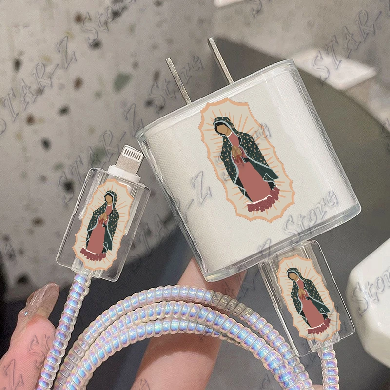 Our Lady of Guadalupe phone case, Virgin Mary iPhone cover, iPhone 15/14/13 Pro Max case, charger protector, data cable winder, religious phone accessory, Catholic gadget, protective phone case, devotional gift, Christian phone cover