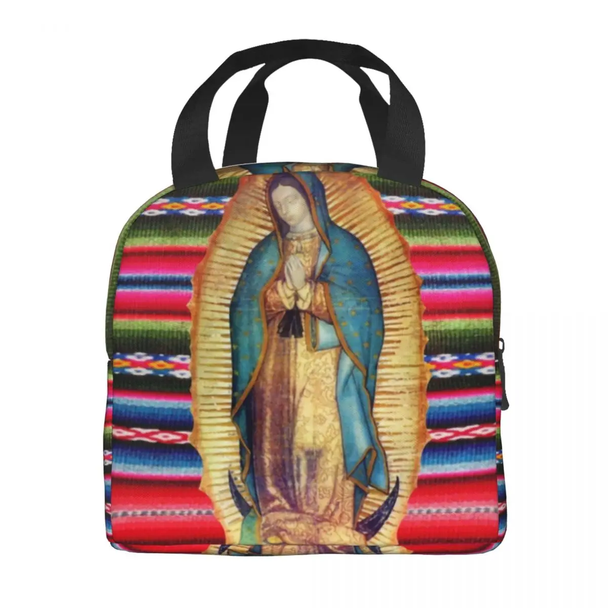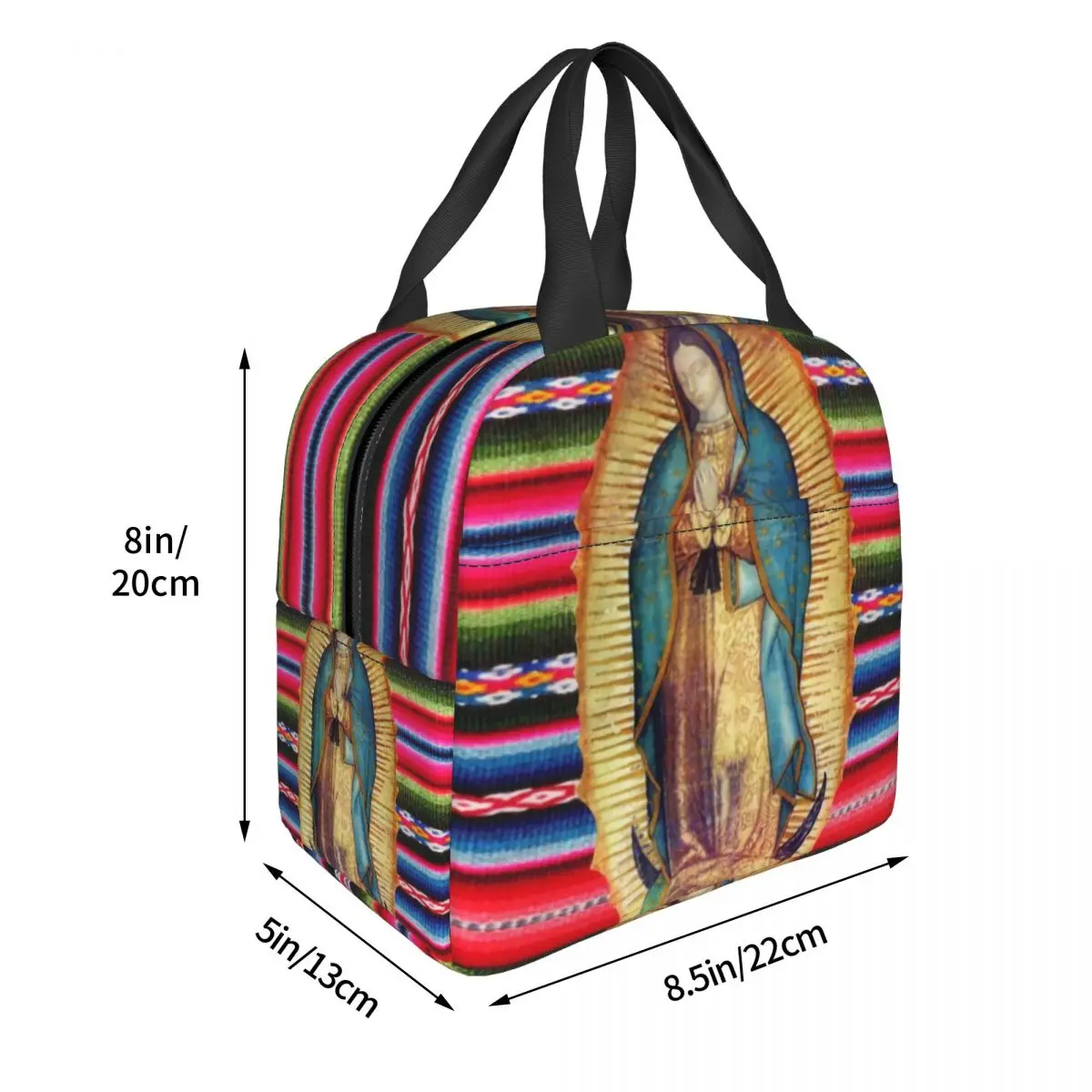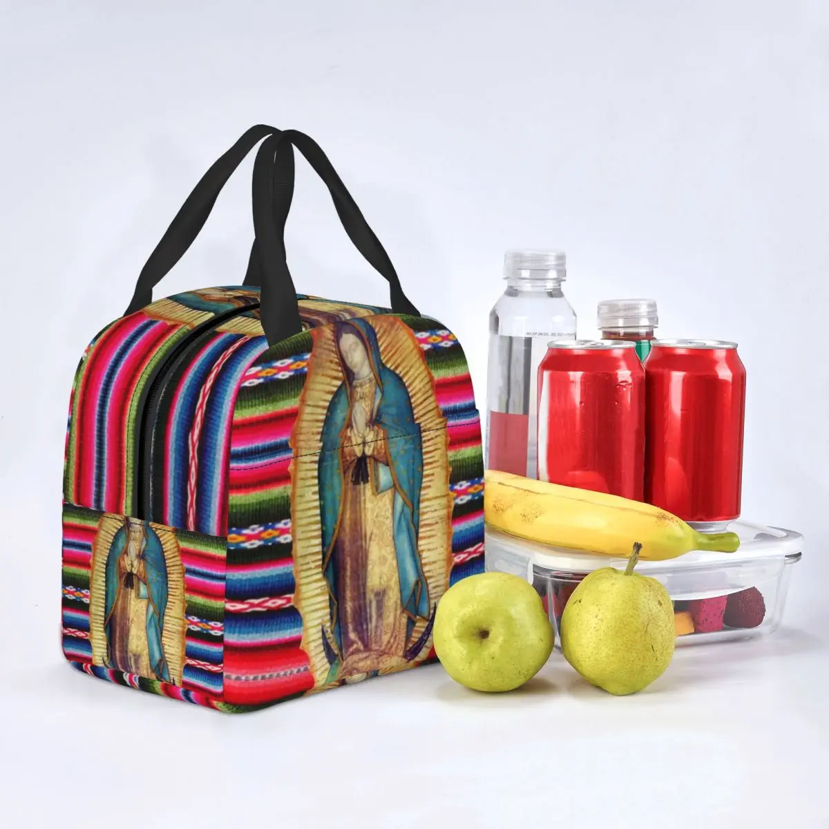 Carry your meals with style and devotion using this Our Lady of Guadalupe insulated lunch bag. Designed with a vibrant zarape pattern and a beautiful Virgen Maria print, this thermal cooler tote keeps food fresh for hours. The waterproof exterior adds durability, while the spacious interior fits bento boxes, snacks, drinks, and daily essentials. Perfect for work, school, travel, or church events—an inspiring and practical gift for Catholic women of all ages.